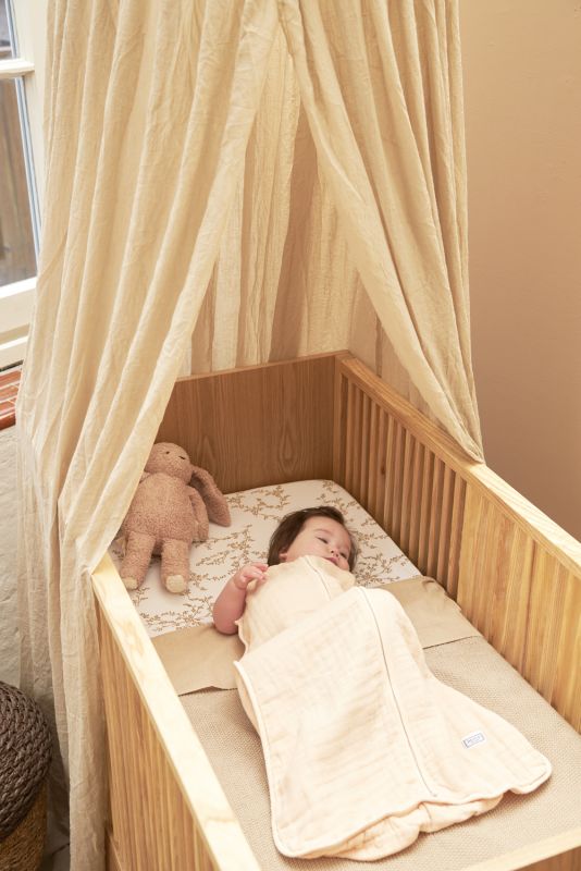 The sleeping bag is made of 100% hydrophilic cotton and therefore perfect for use during the warmer summer days and nights. The hydrophilic cotton breathes very well, has excellent moisture absorption and dries very quickly. This keeps your little one's sleeping climate at a perfect temperature so that he or he does not get too hot in the summer.