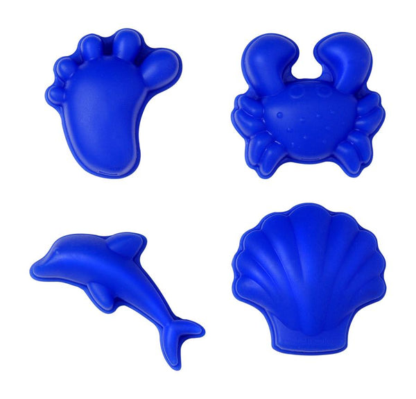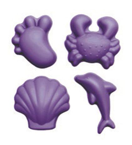 The Scrunch Sand Moulds are perfect for making sand shapes to add to your sand castles on the beach. Four soft recyclable silicone moulds including a foot, crab, shell and dolphin that come packaged in a mesh drawstring bag.