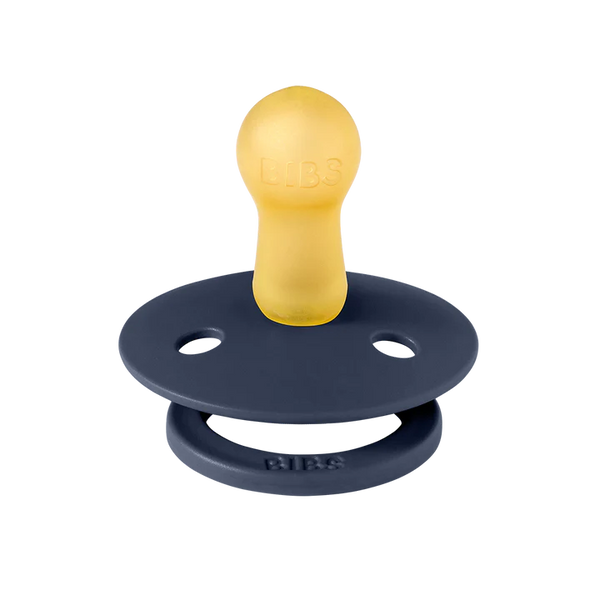 Colour is the original BIBS pacifier and has been on the market for over 40 years. It has the signature round BIBS shield with three vent holes and round BIBS engraved handle ring. The shield is carefully designed to curve away from the sensitive and delicate skin around the baby’s mouth to prevent moisture build-up.