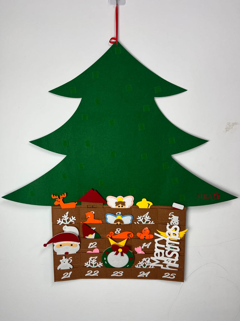 The PIRA Christmas Tree felt Advent Calendar comes with velcro affixed figures that are removed from the pockets and added to the scene each day of Advent. This fun design shaped like a Christmas tree features pieces including Santa Claus, snowmen, angels, tree ornaments, toys and more. Some people also choose to include a candy or treat in each pocket for twice the enjoyment (not included). Quality craftsmanship ensure this calendar can be used year after year. For an extra festive feel it also includes LED lights!