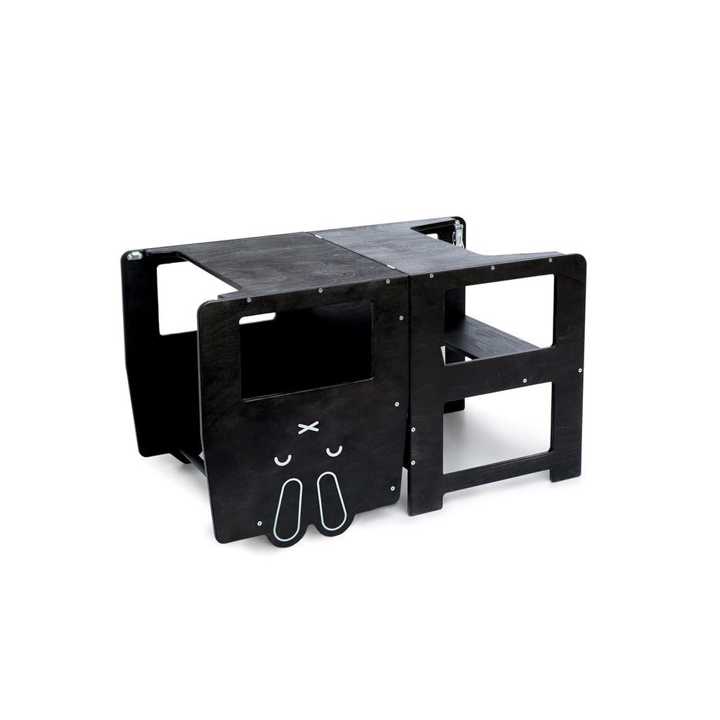 Kitchen tower is equipped with a blackboard surface for drawing.