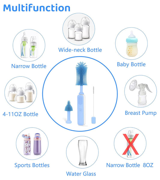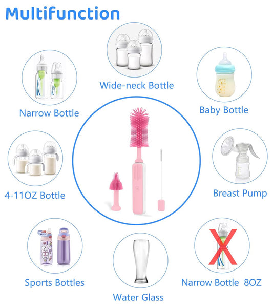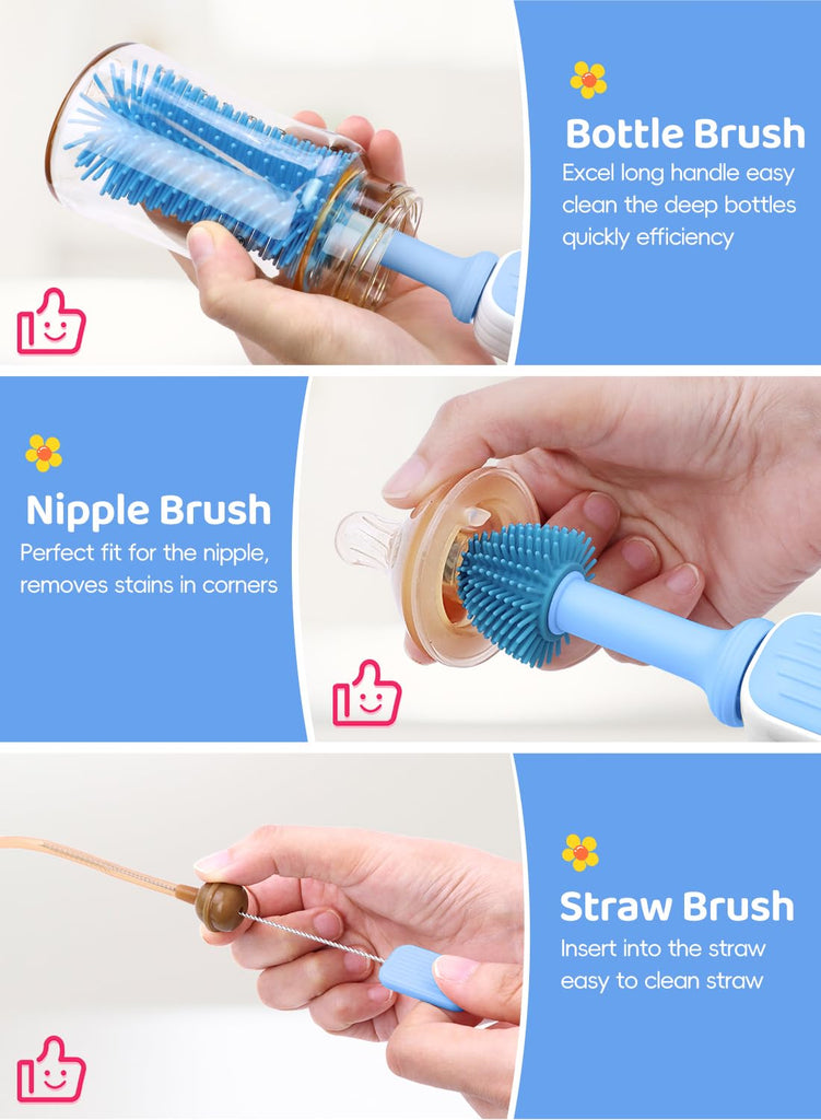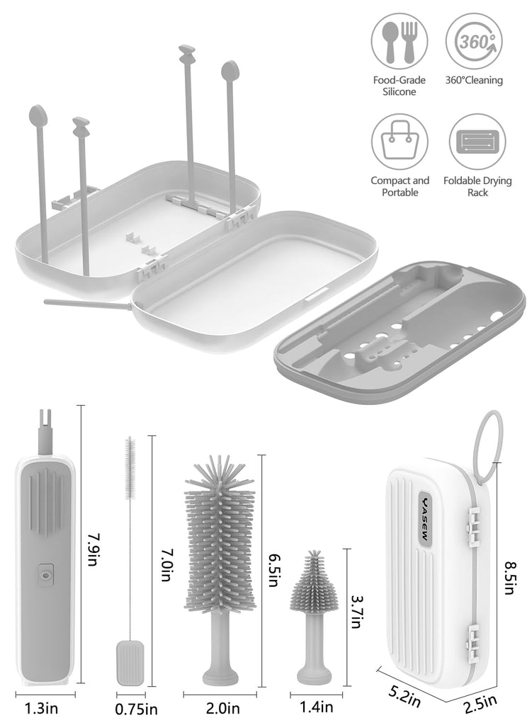 Two adjustable speeds and includes nipple and straw brushes, ensuring cleaning for Every Corner