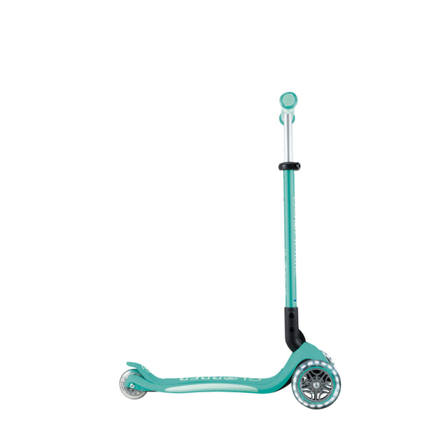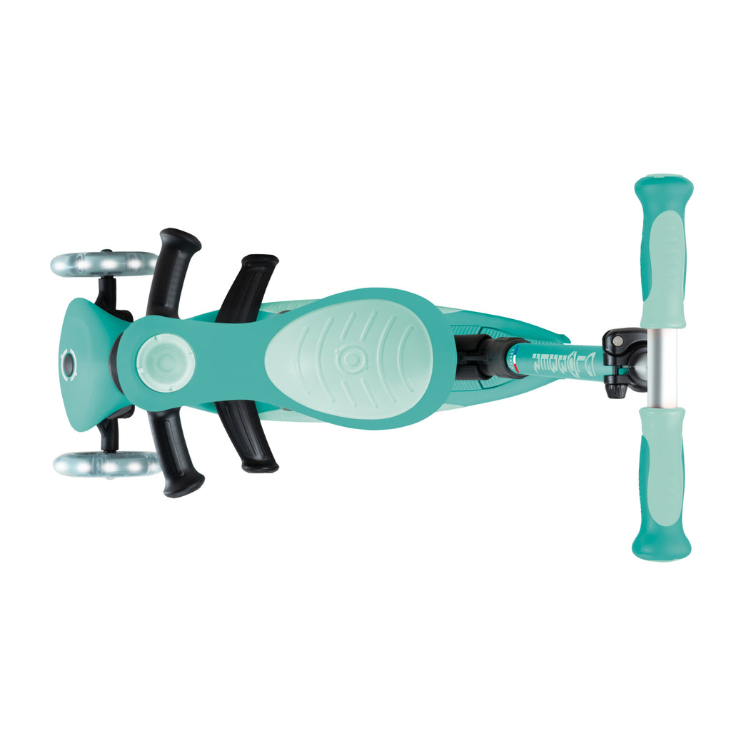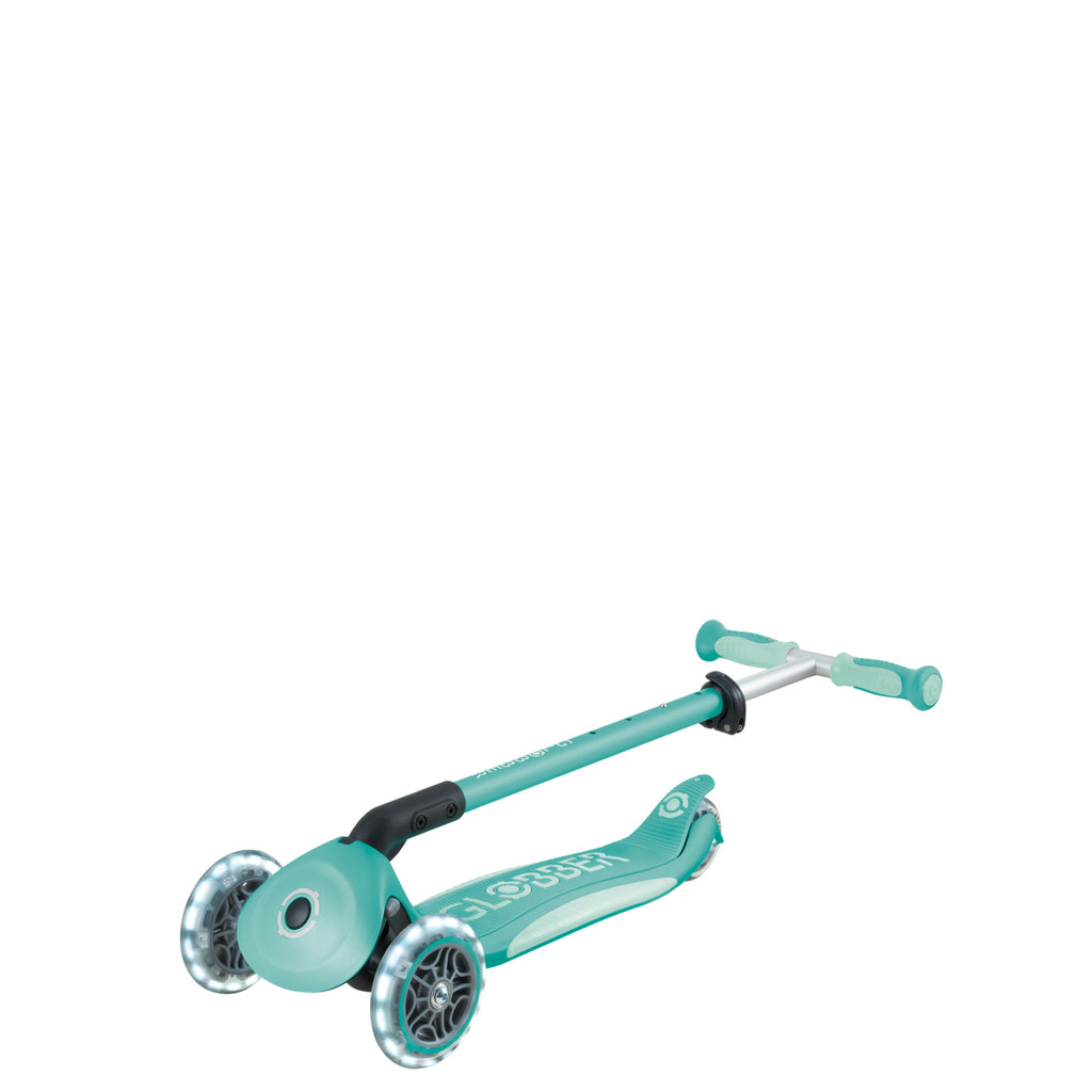 GO•UP DELUXE LIGHTS is also a foldable toddler scooter with seat, coming with our patented folding system with a push button, for a safe and easy way to store the product when in scooter mode.