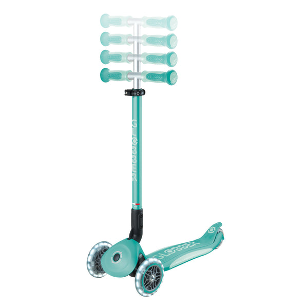 GO•UP DELUXE LIGHTS toddler scooter with seat is also an adjustable kids’ scooter with a 4-height T-bar.