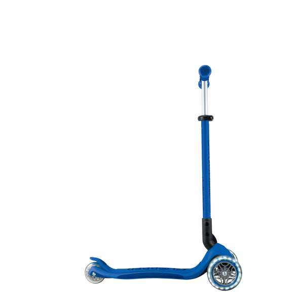 GO•UP DELUXE LIGHTS is our 3-wheel kids’ scooter with light-up wheels, coming with battery-free LED front wheels, which flash in red, green and blue.