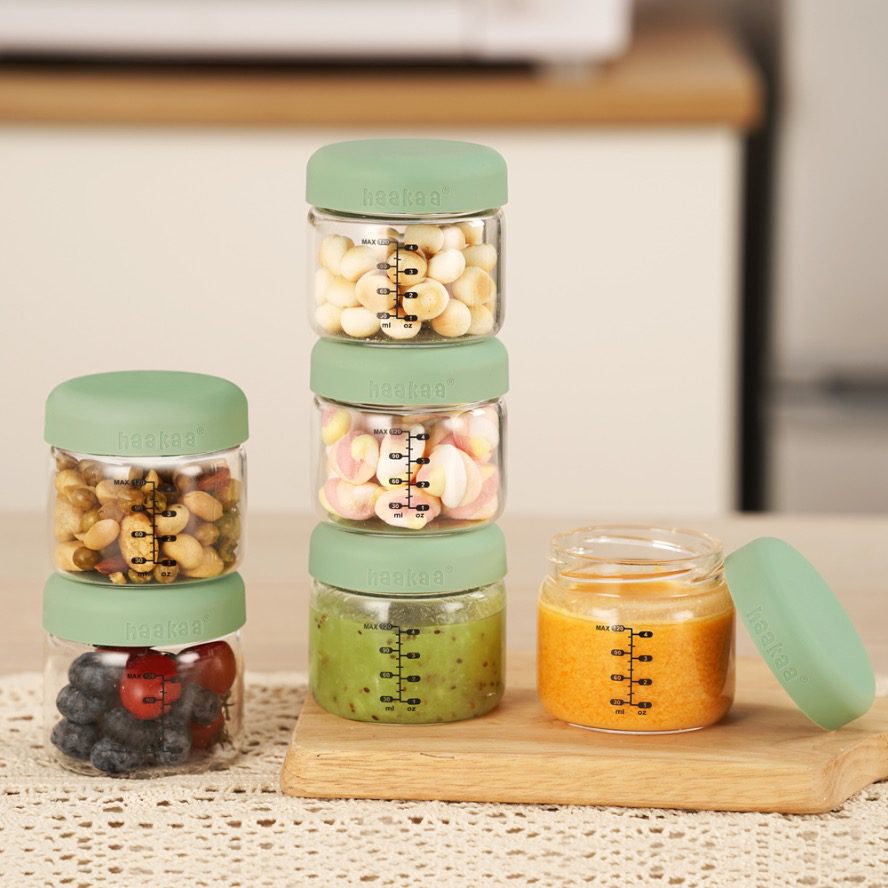 Haakaa Airtight Silicone Lid Glass Jar Set – Mixed (6-pack)