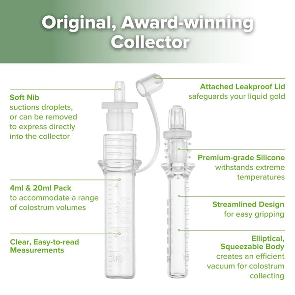 The pre-sterilised 100% medical-grade silicone Colostrum Collectors let you build a stash before your due date. We’ve provided handy label stickers so you can quickly identify your collectors.