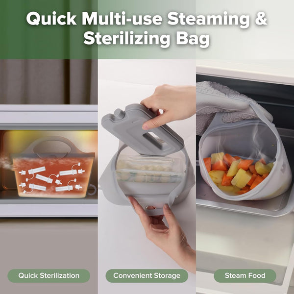 - Versatile bag functions as a steam steriliser for baby gear/household items, foods.