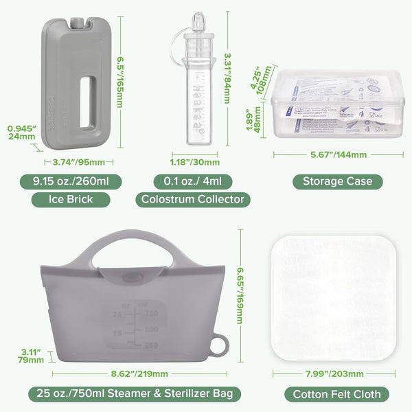 Haakaa Colostrum Essentials Pack: Colostrum Collector 4ml (6pcs) + Steriliser Bag 750ml + Ice Brick