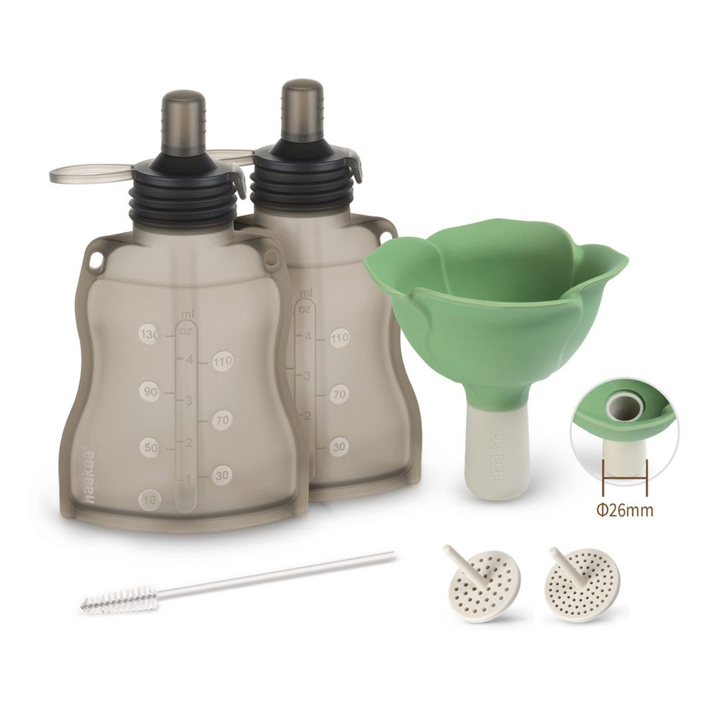 Haakaa Fill & Go Squeezy Pouch (2-pack) & Spring Green Flower Funnel Combo