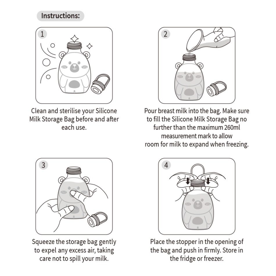 Our Happii Bear Silicone Milk Storage Bag is compatible with all Haakaa Milk Storage Bag and Yummy Pouch accessories, so it can easily adapt to your little one’s needs.