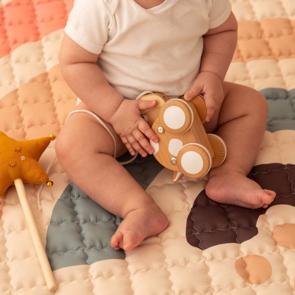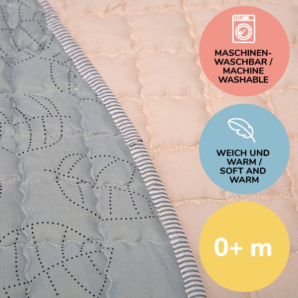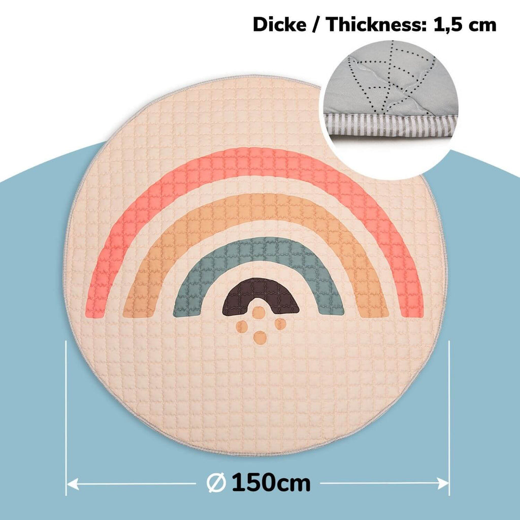 The foldable play mat with a generous 150 cm diameter and 1.5 cm thickness offers plenty of space for crawling and playing, for yoga and sports exercises, or outdoor picnics and the beach. The children’s play mat is easy to clean and suitable for machine washing at 30°C.