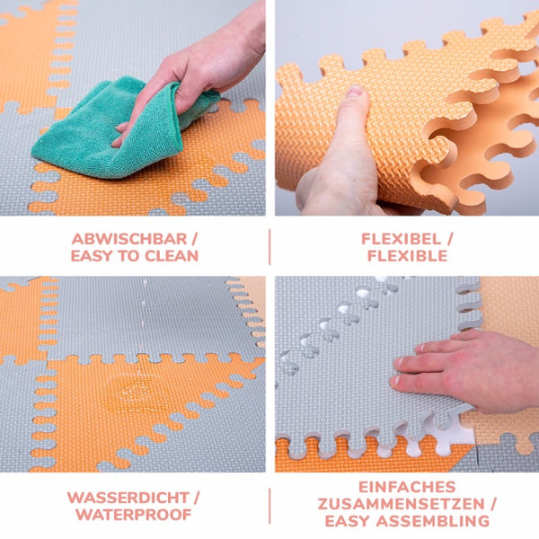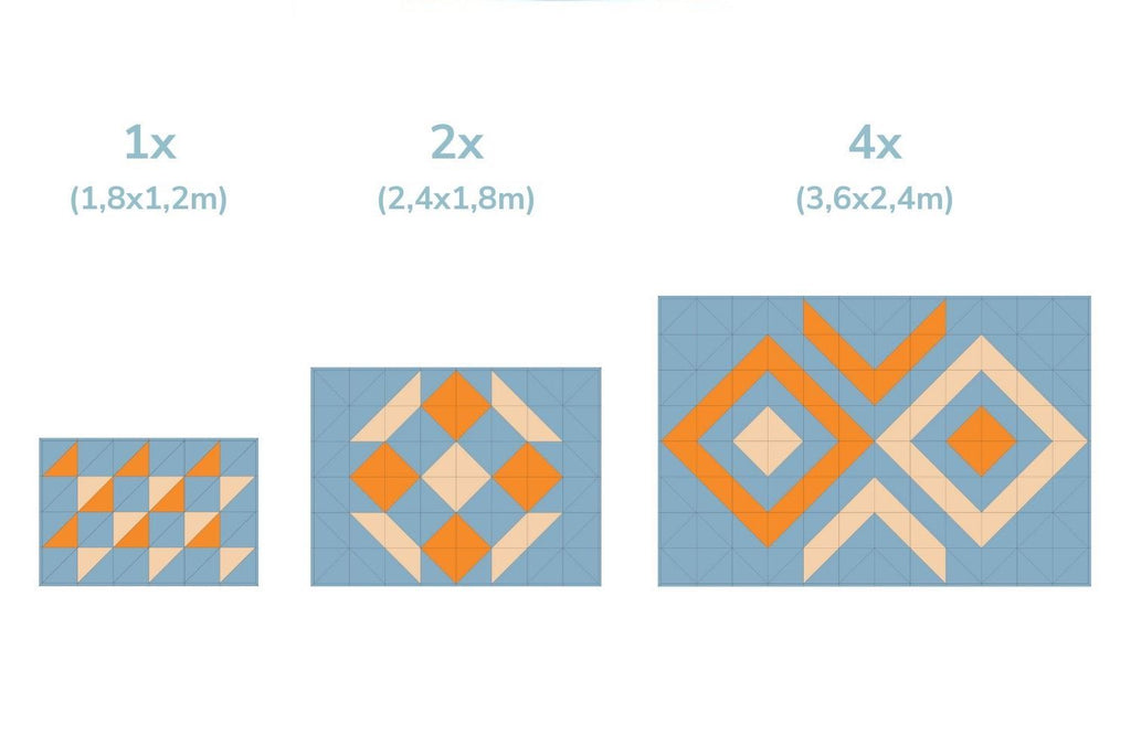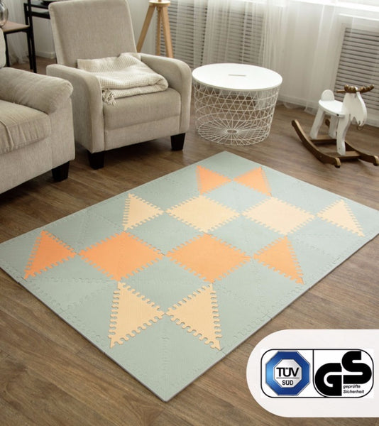 Effortlessly create your individual pattern from 48 interlocking triangles with 3 fashionable colours. The triangular pieces have unique wavy grooves that prevent the foam sheets from falling out.
