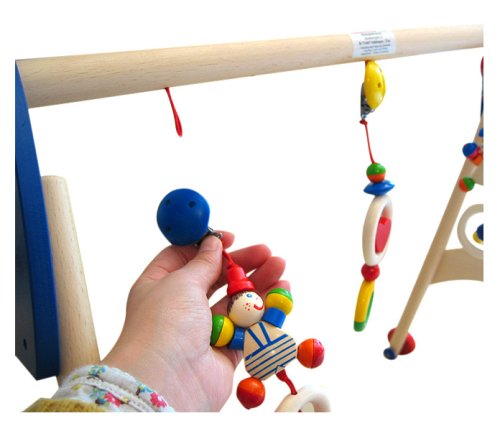 3 in 1: 1. Baby gym, 2. Learn to walk aid and 3. Side pieces are usable as coat-rack. The Baby-Fit has 6 adjustable heights, wheels and detachable figures.