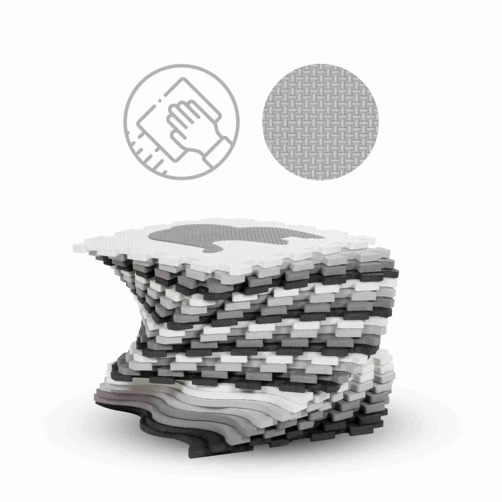 The Kidwell Happy Zoo Puzzle Play Mat offers endless opportunities for creative play, learning, and development. Designed with timeless, contrasting colours to complement any interior, this large foam mat is perfect for both indoor and outdoor use. Its anti-slip surface doubles as a comfortable rug, providing excellent insulation from the ground and cushioning for safe, active play. The shock-absorbing material also helps to mute sound and protect floors. Lightweight and easy to carry thanks to its handy packaging with a handle, the mat encourages imaginative games, whether building a fortress, playing hopscotch, or designing a toy obstacle course. The fun shapes and numerous combination options support logical thinking, spatial awareness, and hand-eye coordination, ensuring your child stays engaged and entertained for hours.