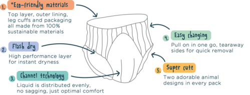 *NEW* Now with a flash dry layer to instantly absorb and lock away wetness, keeping baby’s bottom comfortable.