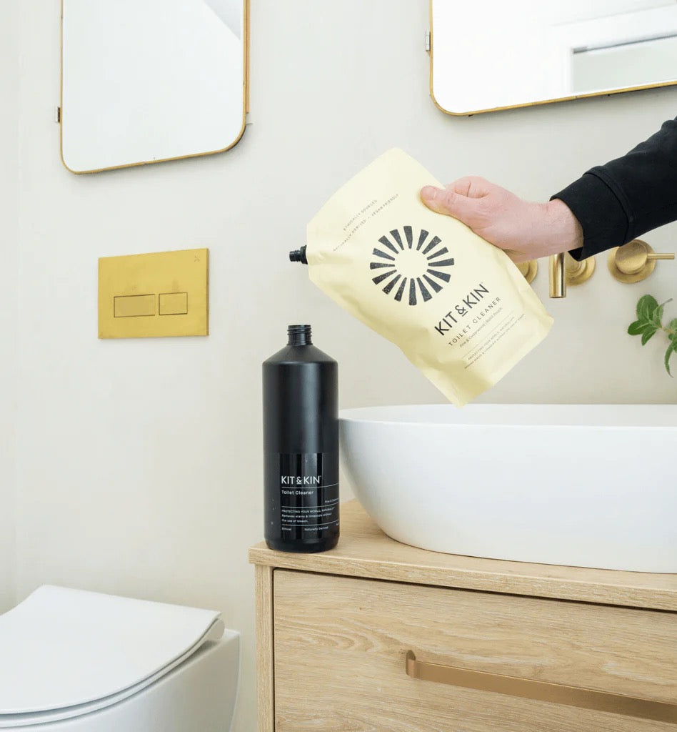 Our non-toxic Kit & Kin toilet cleaner is the natural answer to corrosive bleach. Cruelty free and kind to our planet, it’s proven to be 3 times as effective as the leading non-eco market competitor, killing bacteria and removing limescale. Essential oils give this 100% naturally derived product a pleasant pine & cedarwood scent, making a less than popular chore a little bit more enjoyable.