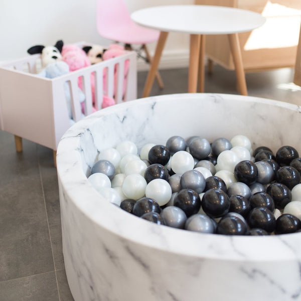 Larisa & Pumpkin Organic Cotton Marble Ball Pit with 200 (Silver/Pearl/Black) Balls