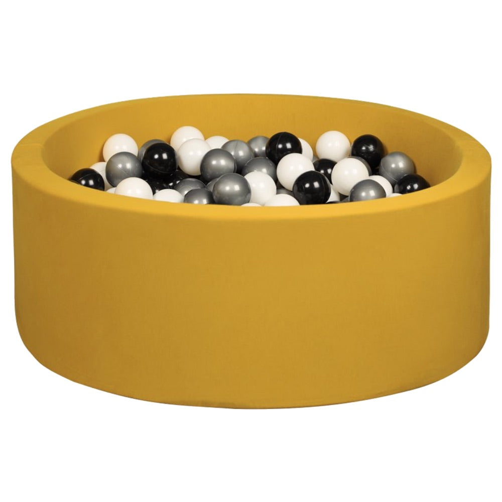 Larisa & Pumpkin Organic Cotton Mustard Ball Pit with 200 (Black/Silver/White) Balls