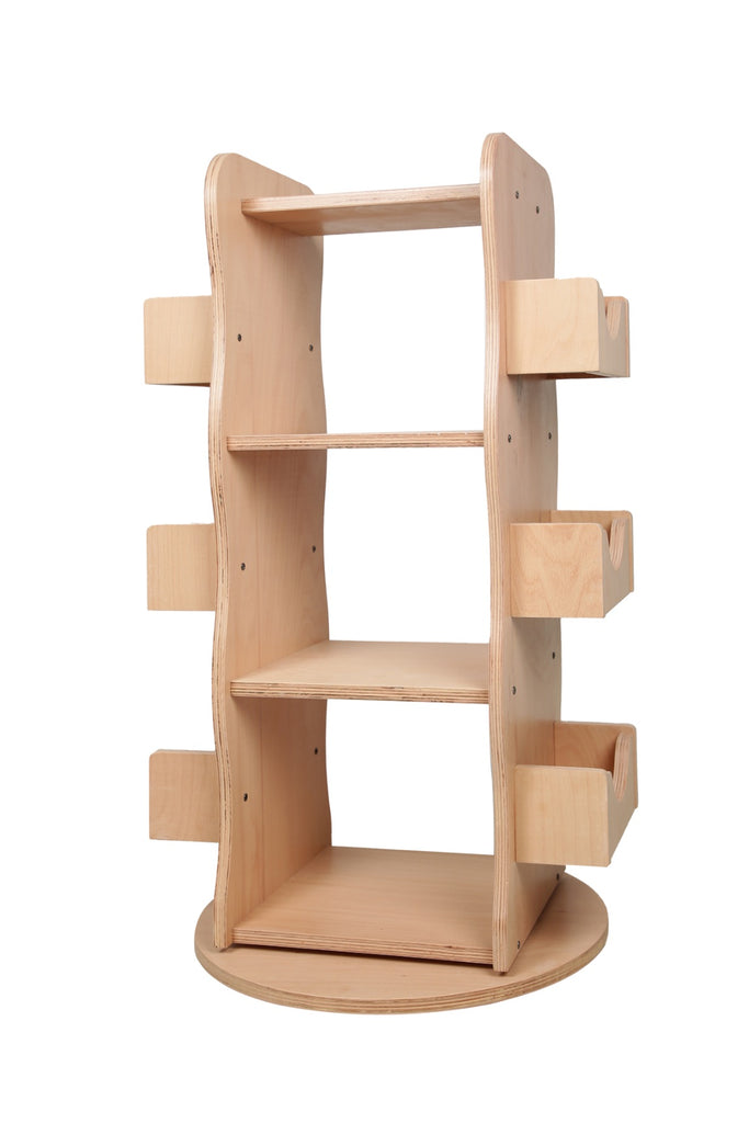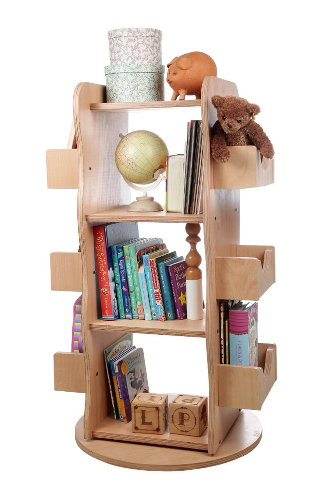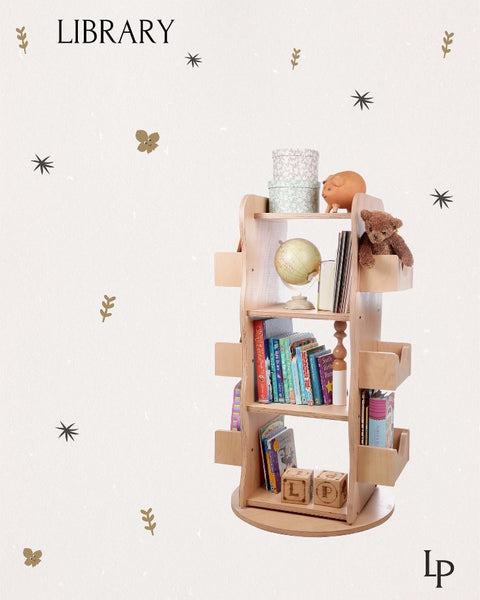 This engaging 360 degrees rotating bookshelf attracts children’s interest and encourages them to read. Inspired by Montessori principles, this practical and space-saving Larisa & Pumpkin Rotating Library will also be a hit with parents! Its construction is both sturdy and smart. Made out of 100% natural beech wood, it has 3 main shelves and 6 side shelves, and features a clever 360 degrees rotating mechanism. This library allows you to store up to 300 books of various sizes, and will look beautiful in any room. Apart from displaying books, it can also be used for other items like toys, keepsakes and plants.