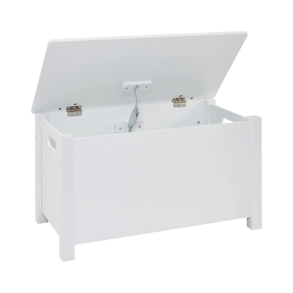 This simple white wooden toy box has a traditional design so looks chic and stylish in any room. Constructed from long-lasting wood materials making this toy box is durable and sturdy. Safety is our number one priority, so this toy box has been designed carefully so little hands can safely lift the lid without the worry of trapping little fingers. Even more importantly, to avoid the lid slamming shut, there is a soft-closing safety hinge inside the toy box.