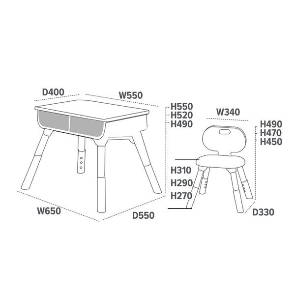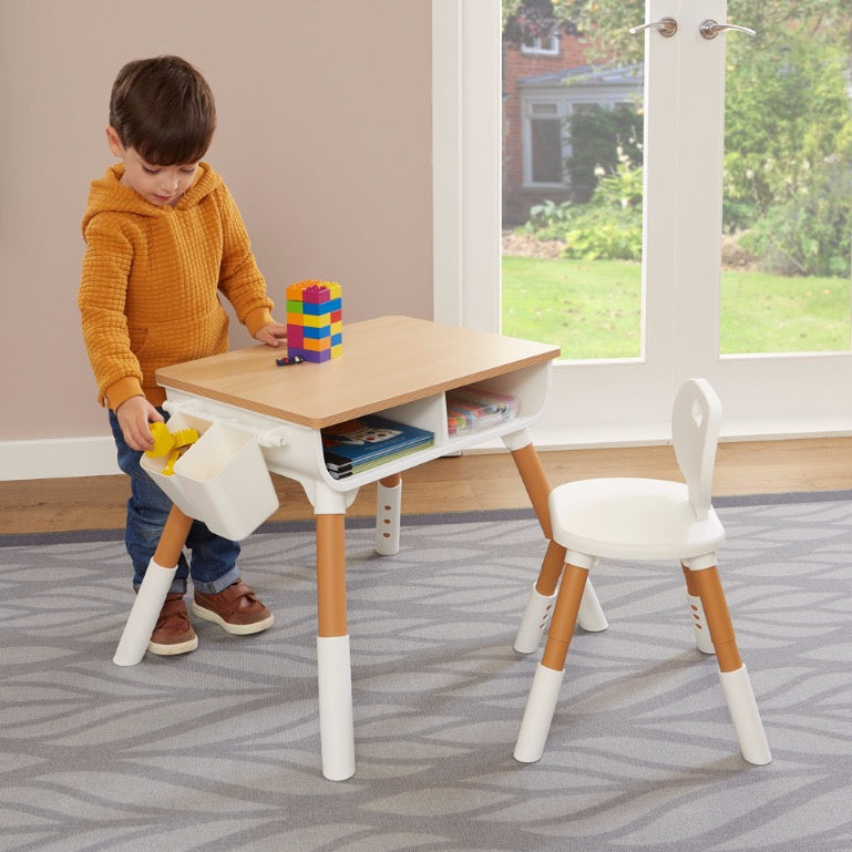 The ‘grow with me design’ of both table and chair legs means that they can be extended in length as your child grows – so this table and desk is not only a great option as your child’s first independent table and chair set – it will be a great servant for several years to come thanks to the clever and ingenious design.