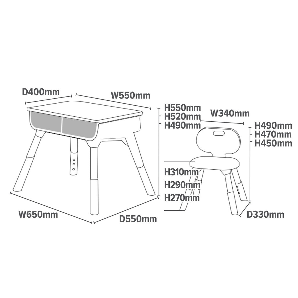 Liberty House Kids’ Scandi Height Adjustable Table and Chair Set, Grey/ white