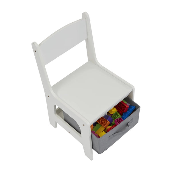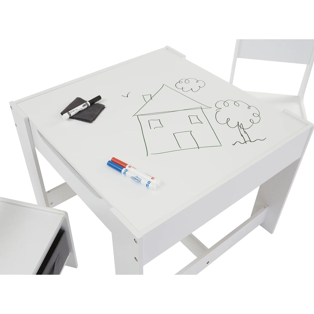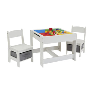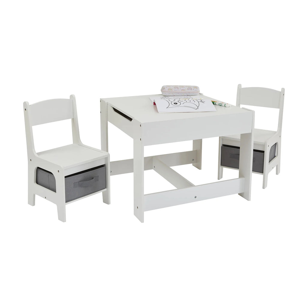 Liberty House Kids’ White Wooden Multipurpose Activity Table & 2 Chairs with Grey Storage Bins