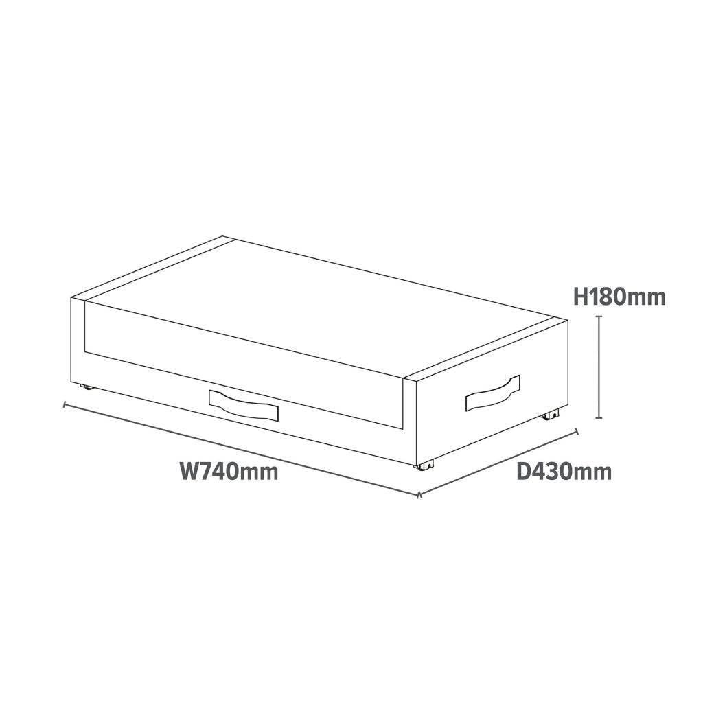 The wheels are recessed for aesthetic appearance, but this also means we optimise storage capacity compared to other wheeled units. The space under a bed can be transformed into a useful storage area – but our underbed storage is also great for loft or garage spaces, closets, underneath sofas, wardrobes and so on.