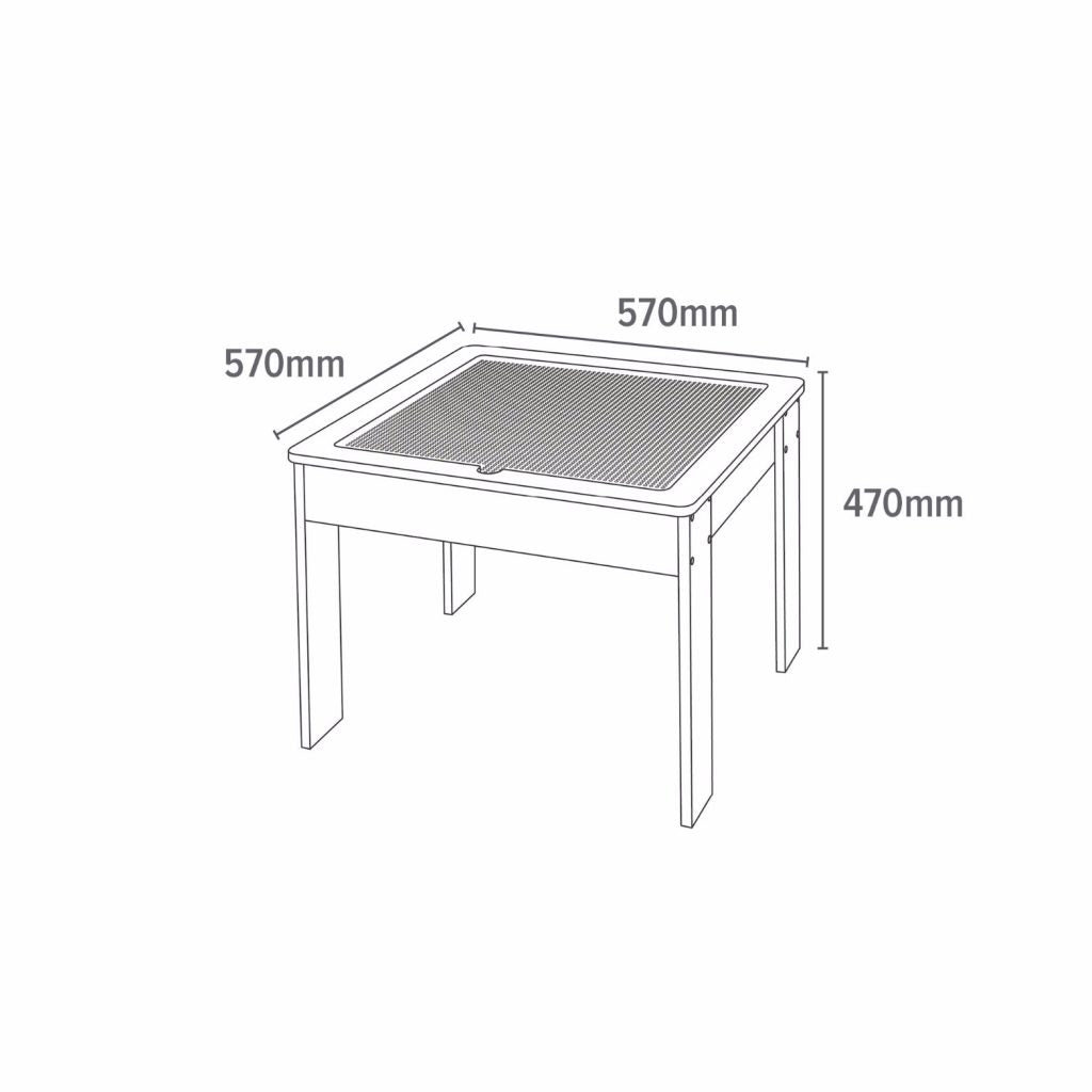 Multipurpose, durable design with removable/reversible top. Under the removable/reversible top (blackboard/whiteboard) there’s a construction board surface. Board takes all popular brands (Lego/Duplo/Megabloks etc). With cover on, the large flat tabletop is perfect for drawing, painting, picnicing or reading at!