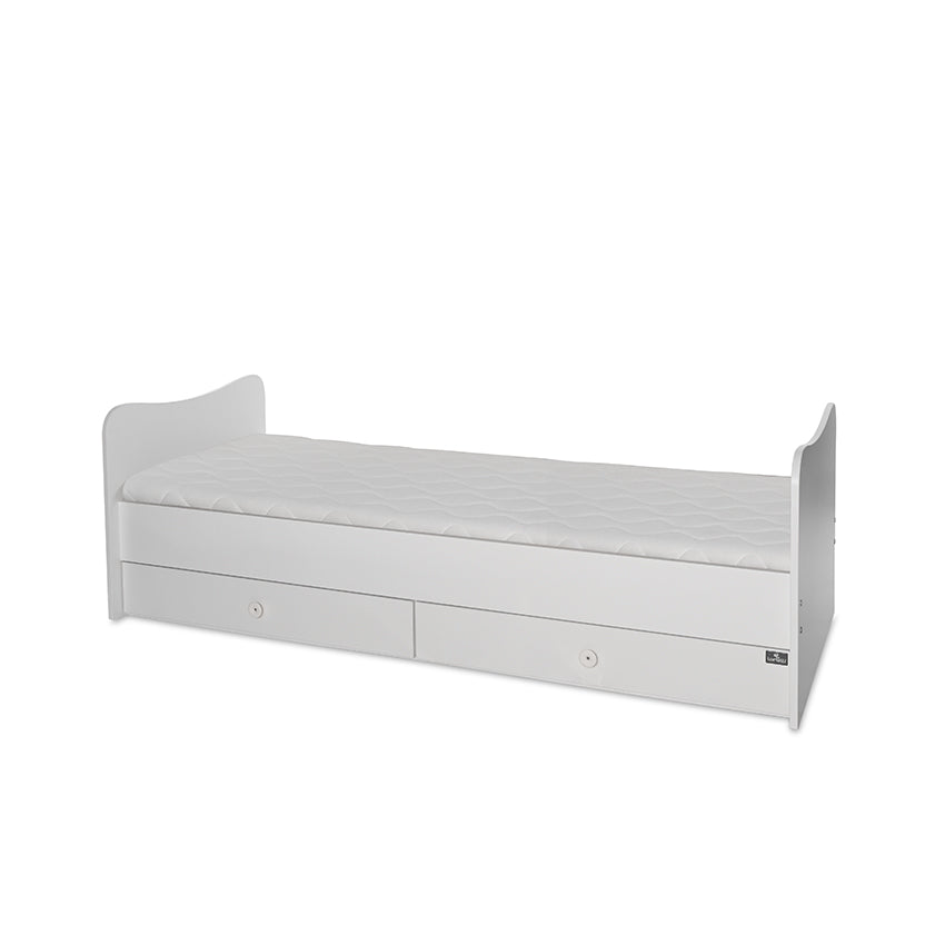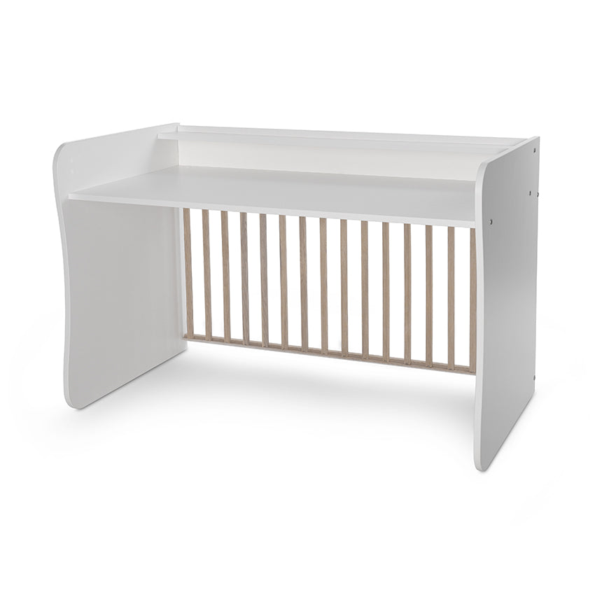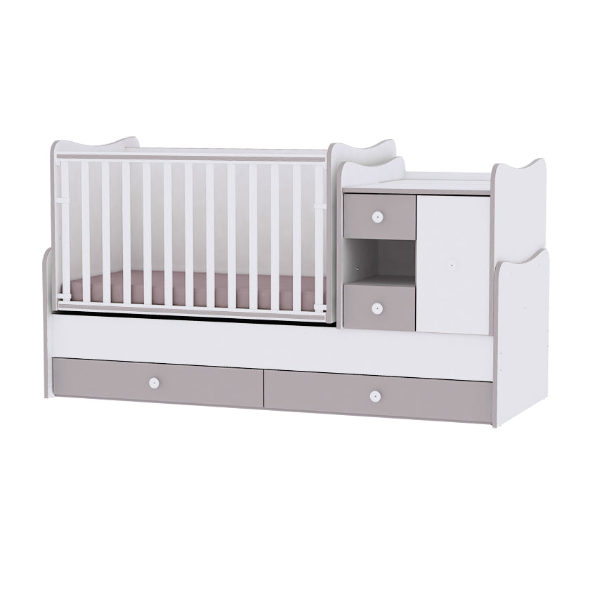 This is a cozy sleeping corner combining a cradle crib and a main bed. The cradle has a fixation mechanism that guarantees the calm sleep and play time of the baby. The mattress is the required supplement that facilitates the parents. The benefits are due to the two big drawers and the chest of drawers (with left- and right-side mounting option) that could accommodate the impressive amount of the little child’s garments and accessories. The changing board is a marvelous opportunity to make there the massages during the first months. The modules transform into a juvenile’s bed and a desk which is yet another proof for the multi-purpose functionality. It is offered with three options for the timber – beech, cherry and oak, and the design features fresh color solutions.