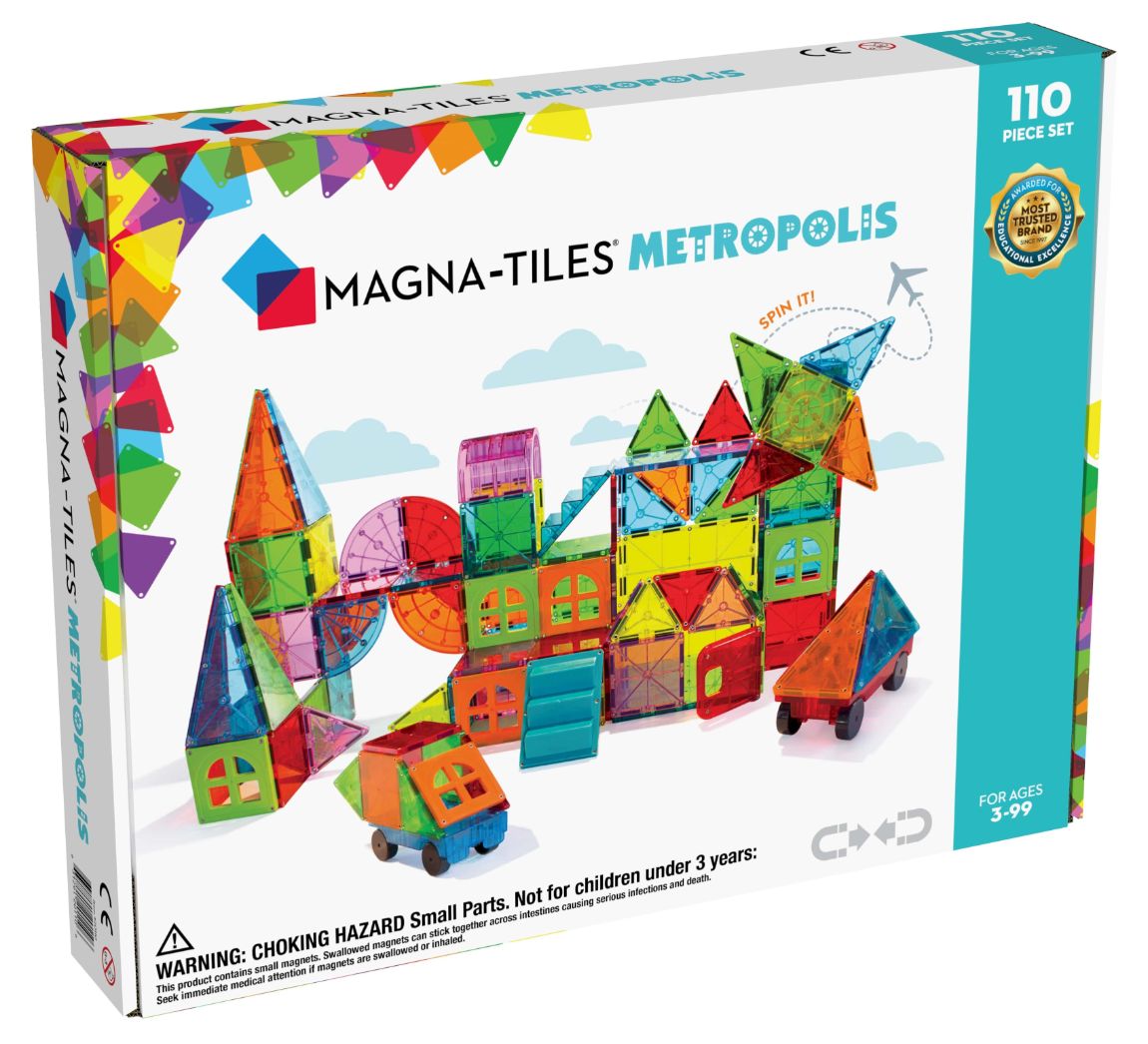 Prepare to be ah-mazed! With the Metropolis 110 Piece Set, Magna-Tiles’ largest set, children can build anything their imagination desires, from city skylines to medieval fortresses to outer space colonies, and dream up the stories that bring them to life.
