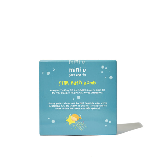 Howdy-do, I’m Fizzy Phil the Pufferfish, ready to shoot for the stars and make your bath time totally intergalactic? Sink my gentle, stain and mess-free bath bomb into warm water and stargaze from the comfort of your tub. Watch as the bath water twinkles and releases a colourful surprise.