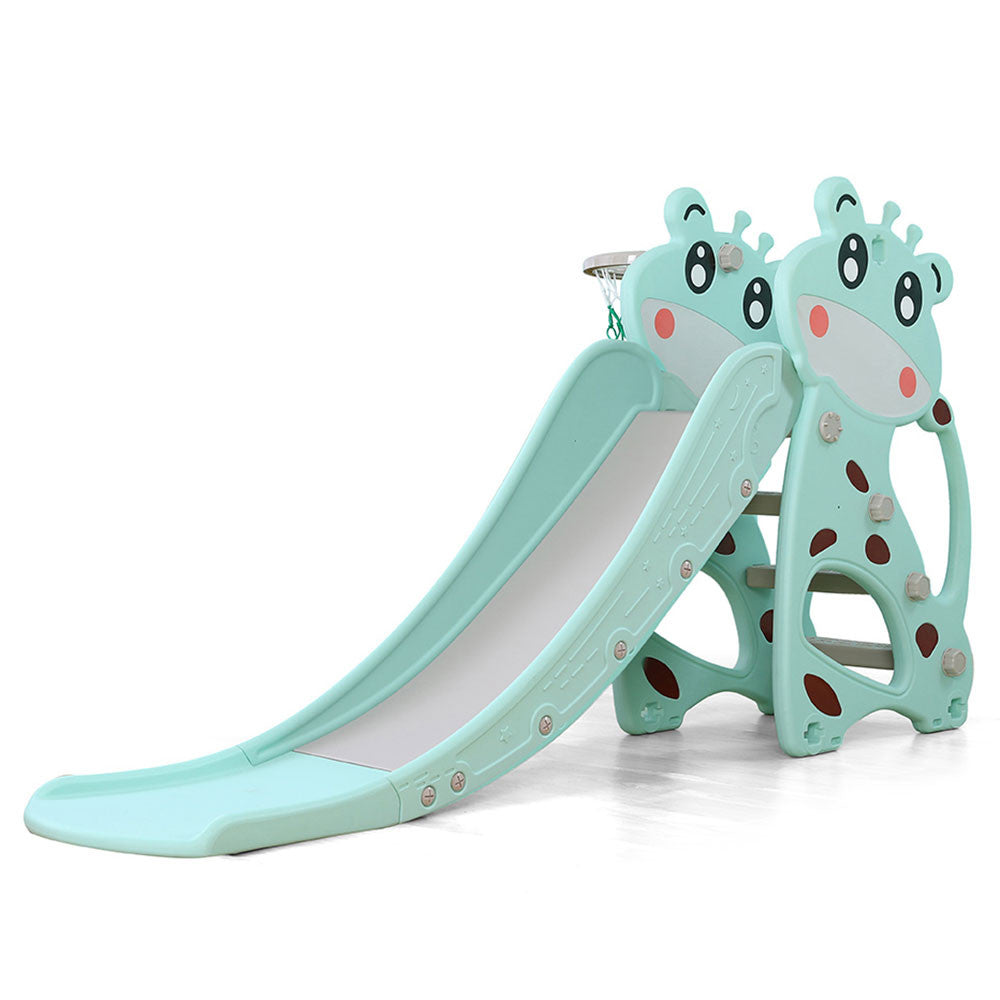 Slide ROCCO with basketball hoop will give your child the opportunity for hours of fun games. The slide features functional non-slip climbing feet and adjustable trough height, plus multicolored design. ROCCO is the perfect gift for all small babies from 3 to 6 years of age, weighing 40 kg.