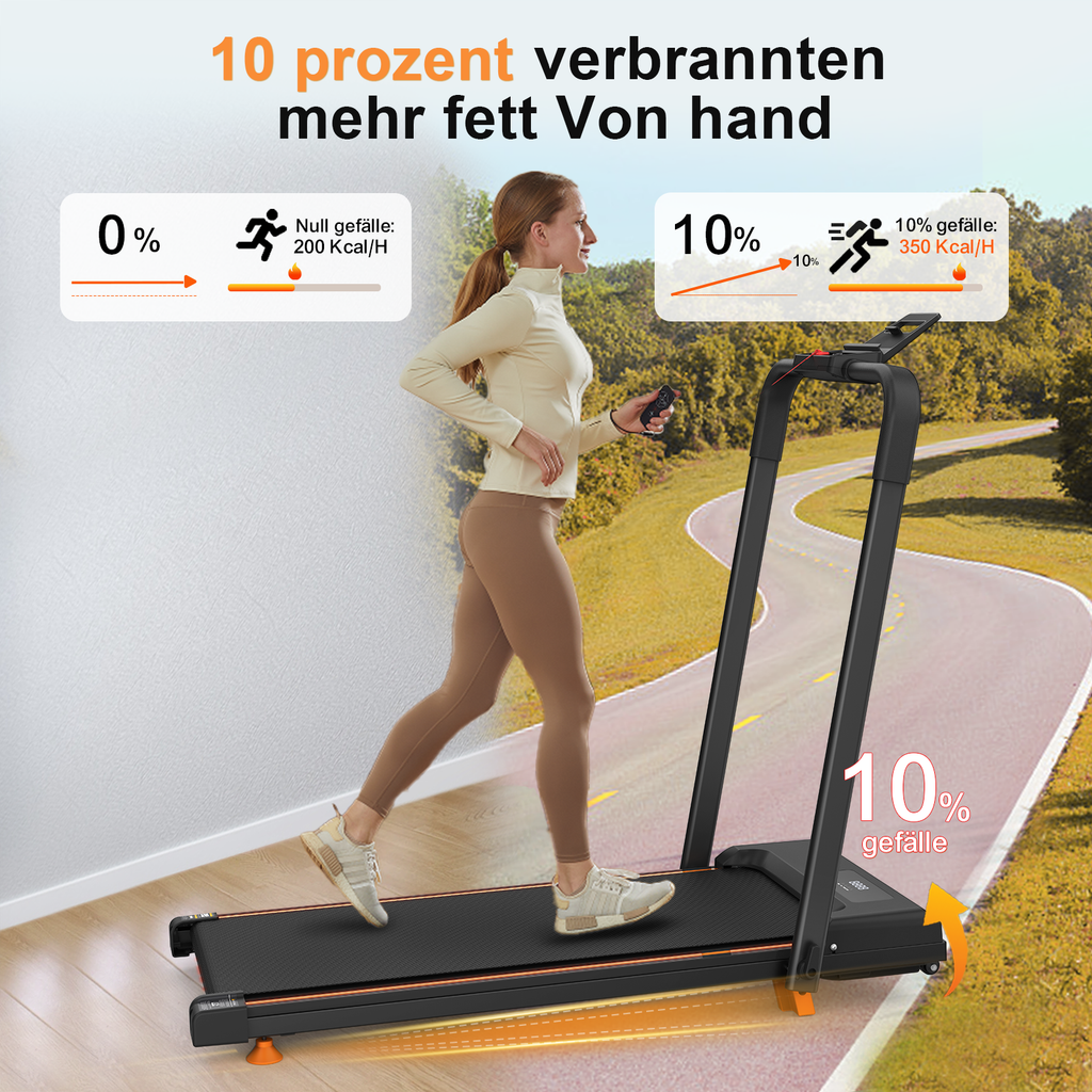 4-IN-1 WALKING, WORKSTATION, AND RUNNING: 3-in-1 folding under-desk treadmill with running mode speeds from 1 to 12 km/h, workstation mode speeds from 1 to 6 km/h, and walking mode speeds from 1 to 6 km/h. The 10% incline home treadmill simulates climbing scenarios more realistically than other home treadmills and burns more calories. It's perfect for walking, jogging, working, and running.