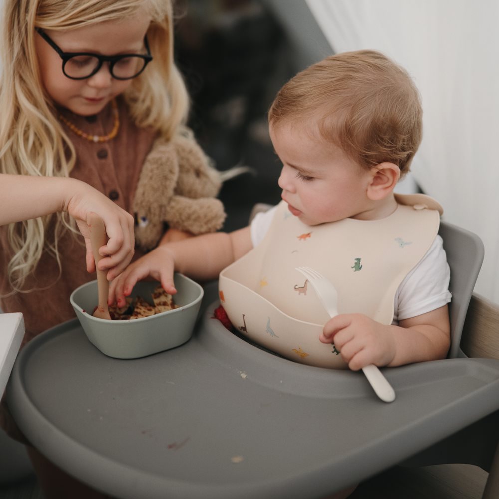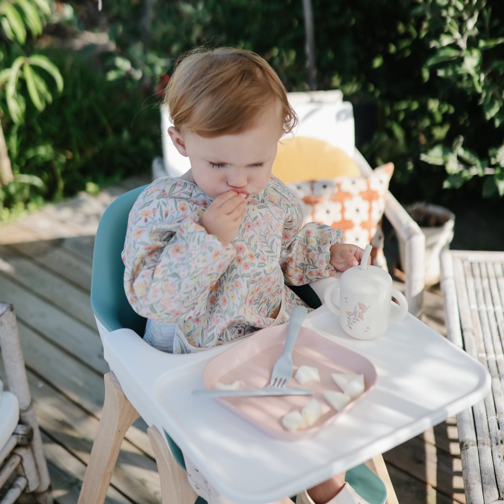 The Mushie Dinner Set in the soft color Sagemakes mealtimes easier for little ones learning to eat on their own. With a matching cup, bowl, and plate, the set provides everything toddlers need to explore food with confidence and independence.