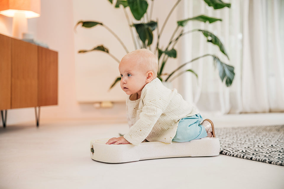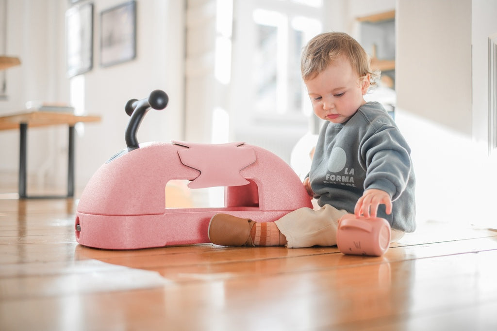 Thanks to the removable and reversible lower plate, the baby slide adapts perfectly to your child's needs. The gliding pads - attached to the underside - provide stability for the first attempts at standing and walking, while the quiet wheels on the other side of the plate offer unlimited indoor fun.