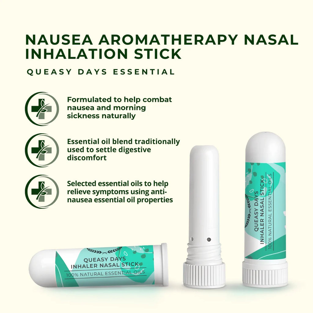 Our Aromatherapy ‘Queasy Days’ nasal inhaler uses 100% natural essential oils formulated by our expert herbalist. The nasal inhaler uses aromatherapy to help quickly target symptoms of nausea. Packaged into a small and discreet inhaler allowing you to help combat your nausea on the move.
