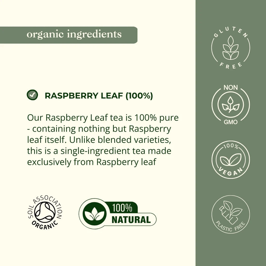 - Ingredients: 100% Organic Raspberry Leaf
