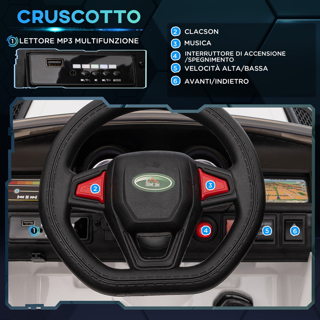Electric Ride-On Car for Children 3-6 Years with Remote Control, LED Lights and Horn, in PP and Metal, 110x68x52 cm, White