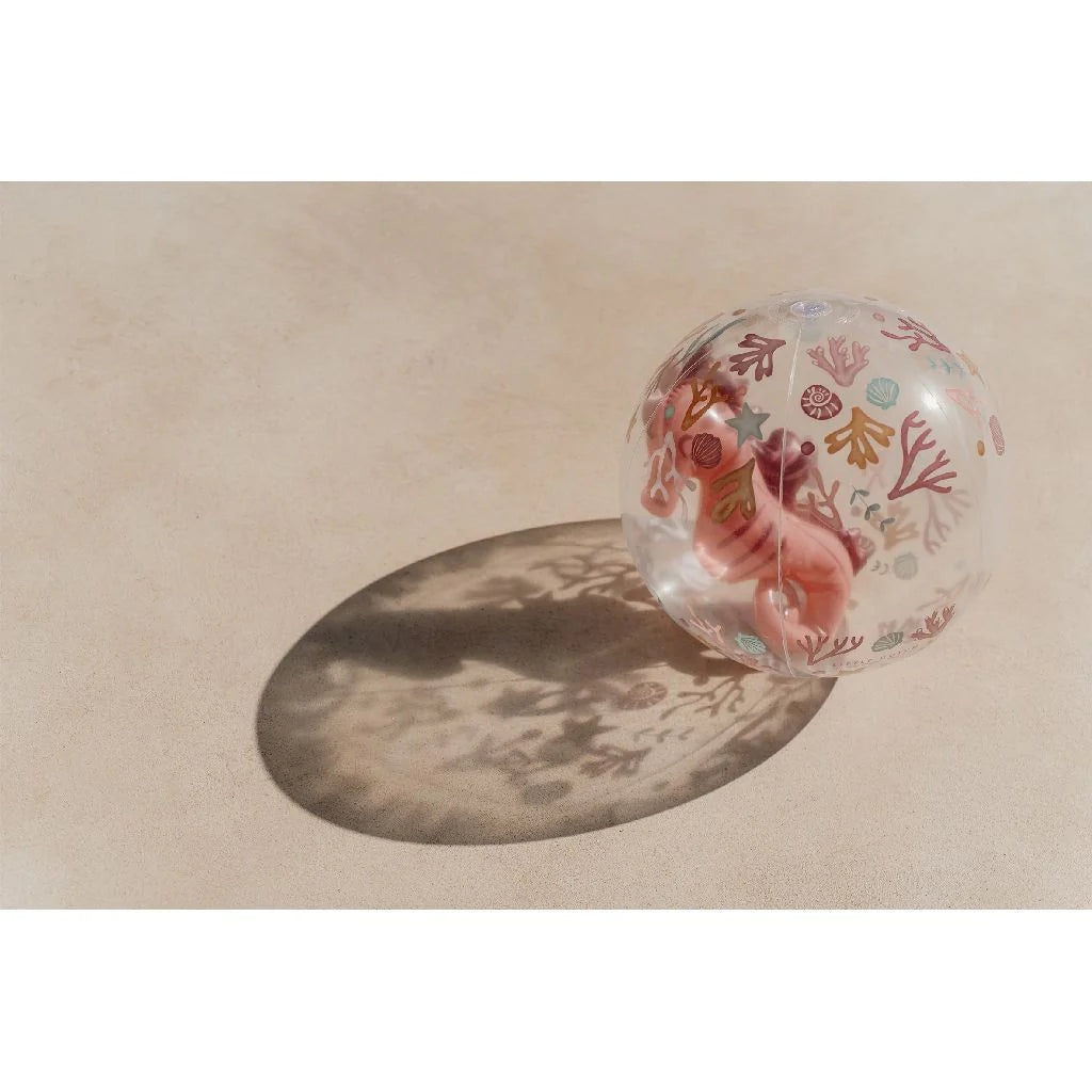 This cool beach ball provides endless fun on the beach, pool or in the backyard. With this cool 3D design, the ball is transparent and you can see a cute seahorse through the ball. The ball is easy to inflate and deflate. Steal the show with this mega cool beach ball. Diameter: approx. 35 cm. Packaged in a full-colour box. Suitable for children 24 months and older.