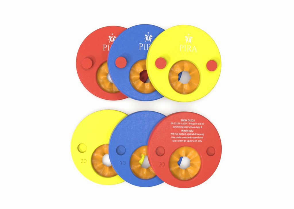 Our PIRA Swim Discs offer children complete freedom of movement in the water. Made from soft, skin-friendly foam, there is no need to inflate and there is no risk of tearing or puncturing, making them 100% safe and durable, unlike inflatable armbands. Start with three floats per arm and remove one from each arm to gradually reduce buoyancy as your child’s confidence in the water grows: