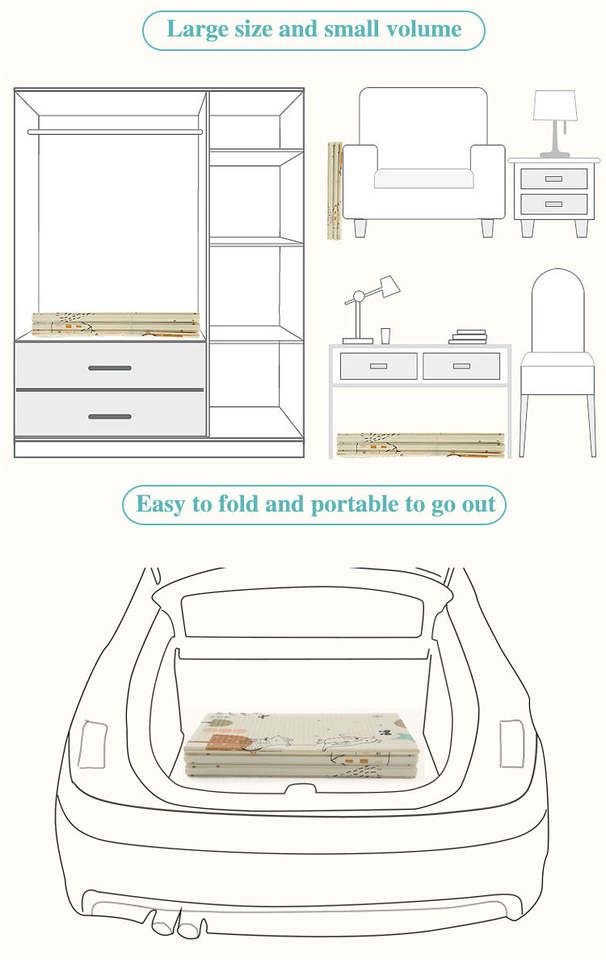 - Reversible play mat with a different print on each side