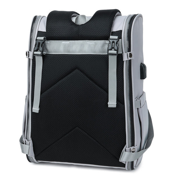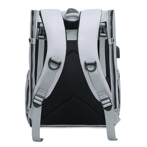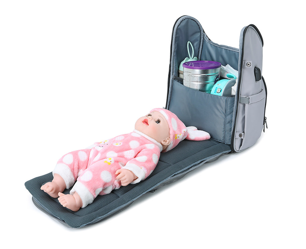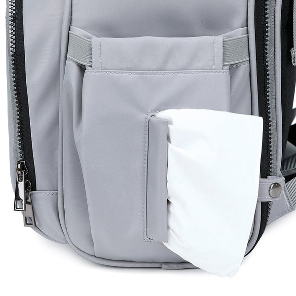 Our PIRA Multifunctional Parent Backpack is packed full of useful features for when parents are out and about with the little ones. With its full open design, our baby bag is not just a stylish diaper bag, but an actual clean place to change your baby’s nappy no matter where you go. The full zip design can quickly turn the backpack into a baby changing station and rolls back up into a sleek looking unisex bag, which both mum and dad will love to carry.