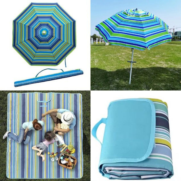 PIRA Outdoor BUNDLE: Beach Umbrella with UV Protection, Tilt Function, Sand Anchor & Carry Bag + Foldable Beach/ Picnic Blanket