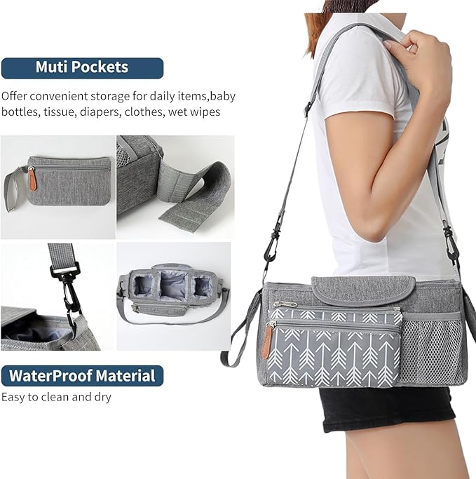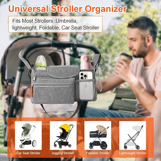 Thanks to the practical adjustable straps The Pira Stroller tray fits all strollers . It is specially designed for parents who want to keep the most essential items always at hand. It's perfect for anything you don't want to waste time looking for thanks to two bottle / bottle holders, a hidden pocket that opens to carry toys, blankets, diapers or a change of clothes, and a phone pocket.