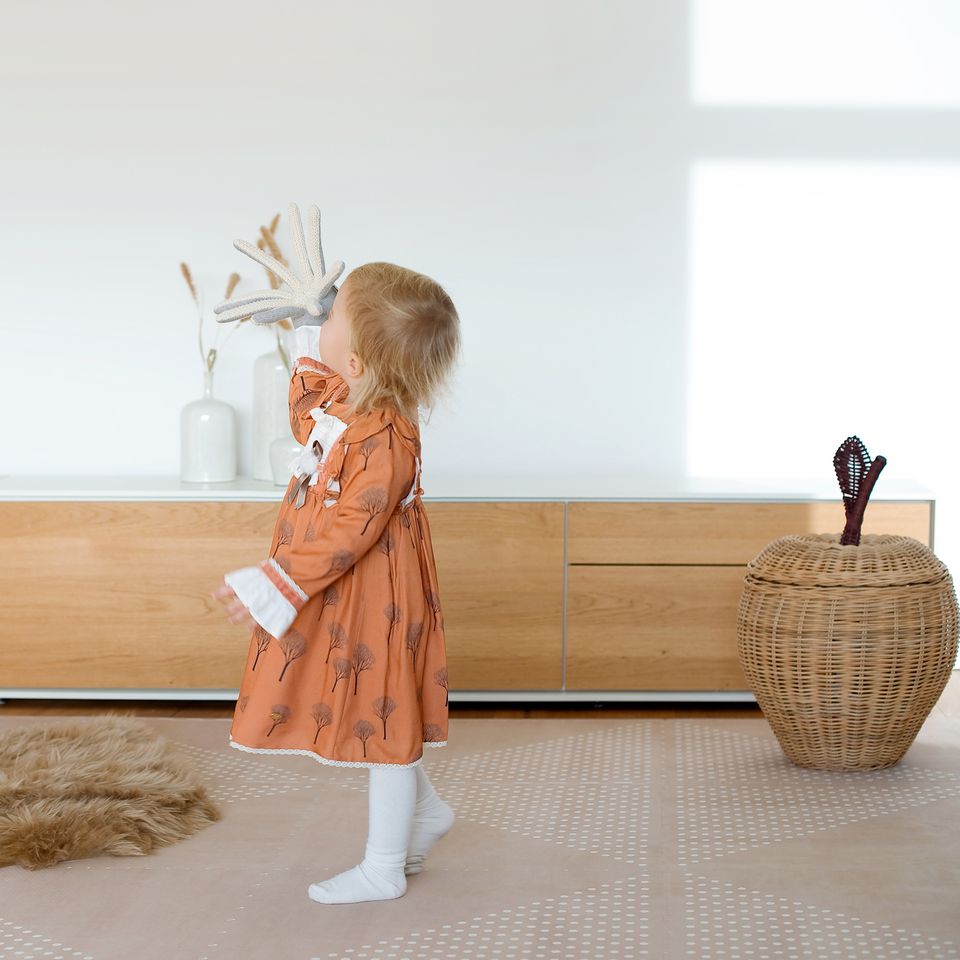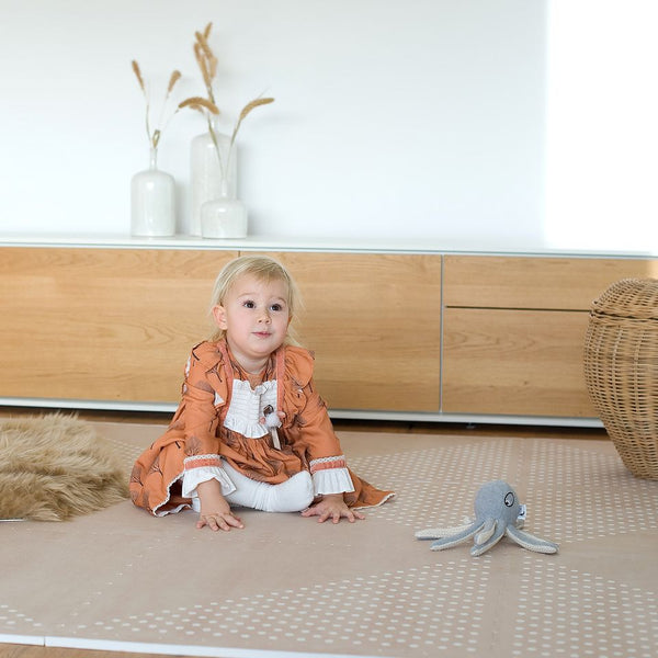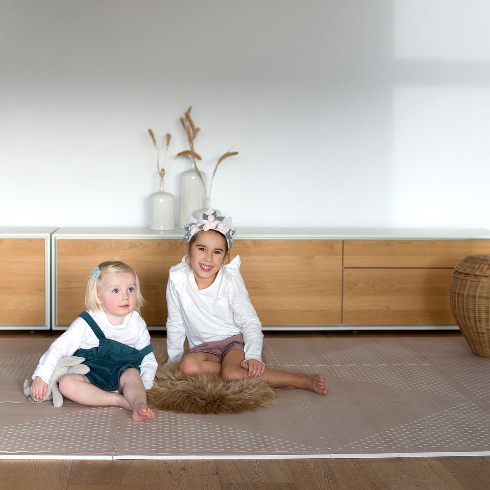 As parents we make a lot of compromises for our children, but style doesn't have to be one of them! Made by the German brand  Toddlekind , this  play mat will  transform any space giving  elegance , but also  safety  for the child! Made of  EVA rubber  and certified by  European and US safety standards  , it is a totally safe product for the child because it is  non-toxic and of high quality ! It is also perfect for any temperature because it  insulates from heat and cold ! The rug is made up of 6 squares (60x60 cm) and 12 closing edges. Easy to clean and dial. Often well over 1 cmThis puzzle play mat will also absorb all the hits! Perfect for playing on your lap, standing or sitting, it is suitable for all ages! The peculiarity of this play mat is that  it can be assembled .