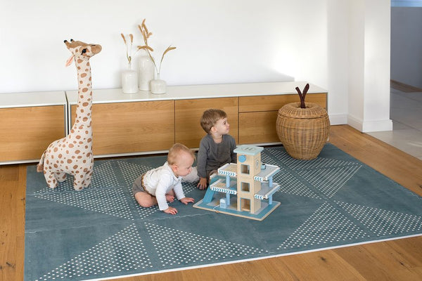As parents we make a lot of compromises for our children, but style doesn't have to be one of them! Made by the German brand  Toddlekind , this  play mat will  transform any space giving  elegance , but also  safety  for the child! Made of  EVA rubber  and certified by  European and US safety standards  , it is a totally safe product for the child because it is  non-toxic and of high quality ! It is also perfect for any temperature because it  insulates from heat and cold ! The rug is made up of 6 squares (60x60 cm) and 12 closing edges. Easy to clean and dial. Often well over 1 cmThis puzzle play mat will also absorb all the hits! Perfect for playing on your lap, standing or sitting, it is suitable for all ages! The peculiarity of this play mat is that  it can be assembled .
