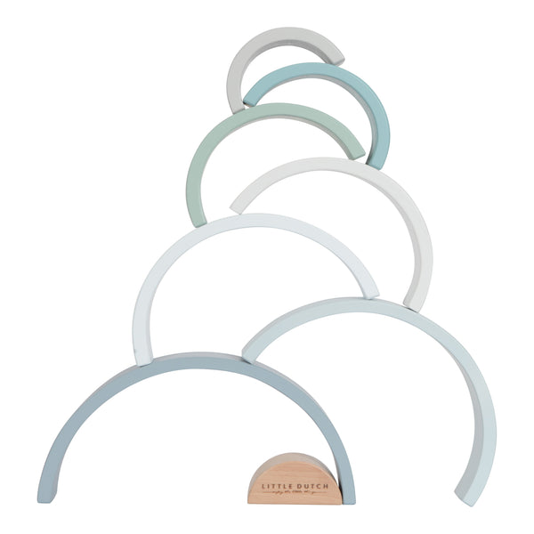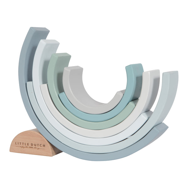 The Little Dutch wooden rainbow is a wooden stacking tower in the shape of a beautiful rainbow. The rainbow looks great in a child’s bedroom and is fun to play with. The rainbow consists of 8 arches that fit on and in each other. Your child can use these semi-circular shapes to play and learn and to make all kinds of creations by using their imagination. The arches can also be used as a train tunnel, a house for little dolls or mountains for little cars.