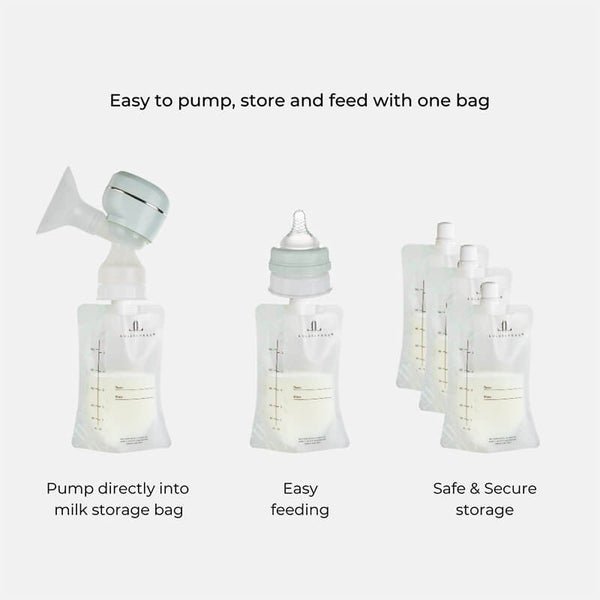 Save every precious drop of breast milk by choosing whether to pump directly into a bottle or breast milk storage bag. Our clever design means you can attach a teat to the milk bag and feed your baby instantly. The Lola&Lykke breastmilk bags are pre-sterilised and are perfect for feeding and storing your breast milk.